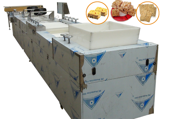 自動(dòng)切割機(jī)主要用于米花糖、沙琪瑪、花生糖、瓜子糖、蛋苕酥、米麥通、琪瑪酥等休閑食品的成型。它具有連續(xù)給料預(yù)壓和多道壓輥滾壓自動(dòng)成型的特點(diǎn),產(chǎn)品表面平整,密度適中,厚薄均勻,真正實(shí)現(xiàn)了自動(dòng)化,智能化;每小時(shí)產(chǎn)量可達(dá)200-250kg,該機(jī)采用變頻技術(shù),各部動(dòng)作由PLC控制協(xié)調(diào),可對不同的產(chǎn)品和工藝來調(diào)節(jié)速度和厚度來達(dá)到產(chǎn)品成型的效果